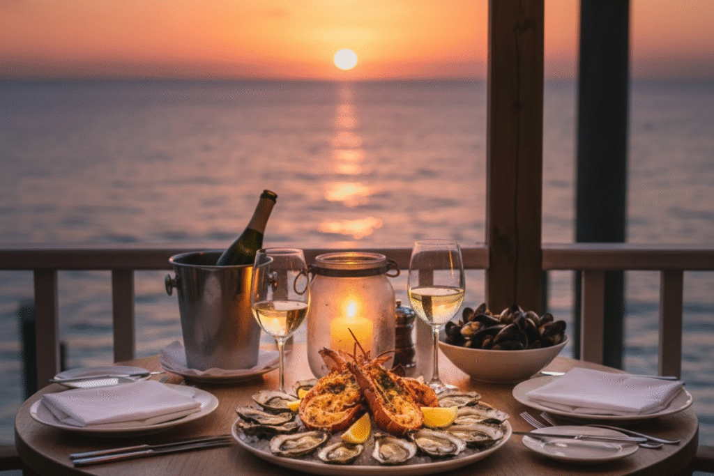 Many seafood restaurants feature waterfront locations, sunset views, soft lighting, and intimate seating that create a romantic setting. Fresh seafood dishes, paired with wine or cocktails, make them especially popular for date nights, anniversaries, and special moments for couples.