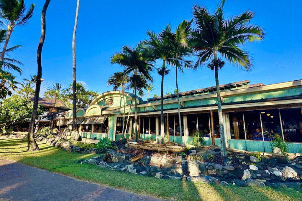 One of the most famous Coastal Restaurants in the world, Mama’s Fish House offers fresh, locally caught fish with a Polynesian twist. Set on a private beach in Paia, it delivers a tropical, upscale atmosphere with palm trees, ocean waves, and unforgettable island flavors.