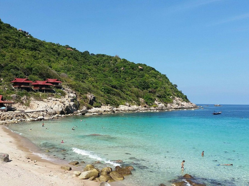 Haad Yuan Beach on Koh Phangan is a serene escape known for its untouched beauty and laid-back vibe. Accessible mainly by boat, it remains a hidden gem away from the island’s bustling crowds. The beach is surrounded by lush jungle, offering a sense of seclusion, pristine white sands, and crystal-clear waters ideal for swimming and relaxation. Its tranquil environment makes it perfect for travelers seeking peace, romance, or a quiet retreat in nature.